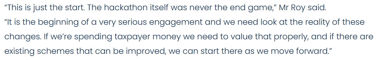 Having worked in state government and been involved in policy development over the years I can see that this is an area that is ripe for disruption. Approaches to policy development, like #policyhack, might just be part of the equation for renewal of the government's policy development framework.