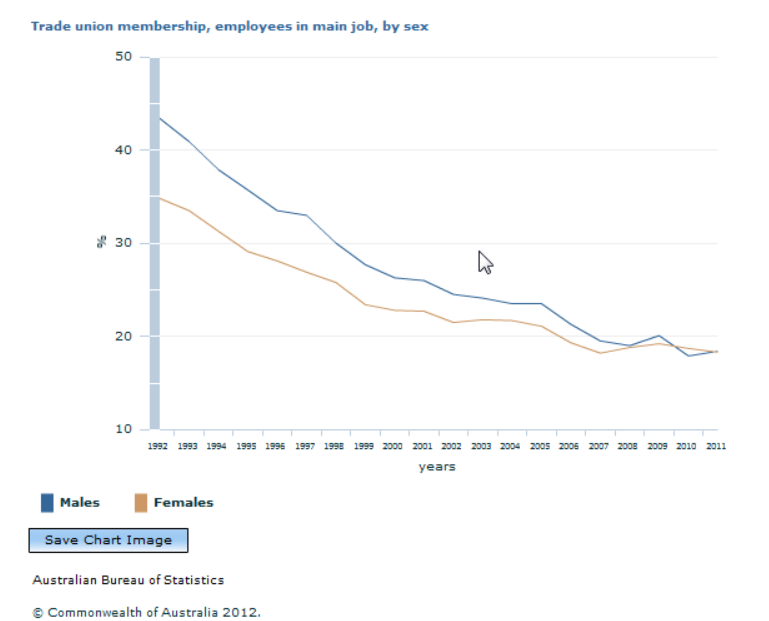 Historically, the funds held by unions are derived from a broad based union membership among the working population. However, the Australian unions have already experienced a substantial drop in membership over the past few decades, as noted by the Australian Bureau of Statistics (ABS) late in 2013: